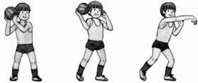 - Agarrar a bola com as duas mãos, à altura da testa, colocando a mão lançadora atrás e por baixo da bola e a outra mão numa posição lateral.
