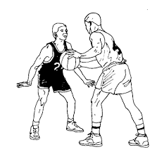 - Realizar o primeiro drible ligeiramente para o lado e para a frente, com a mão mais afastada do defensor (interpor o seu corpo entre a bola e o defensor).
