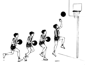 - Direcionar a bola para a tabela através da extensão do membro superior e movimento de flexão do pulso.